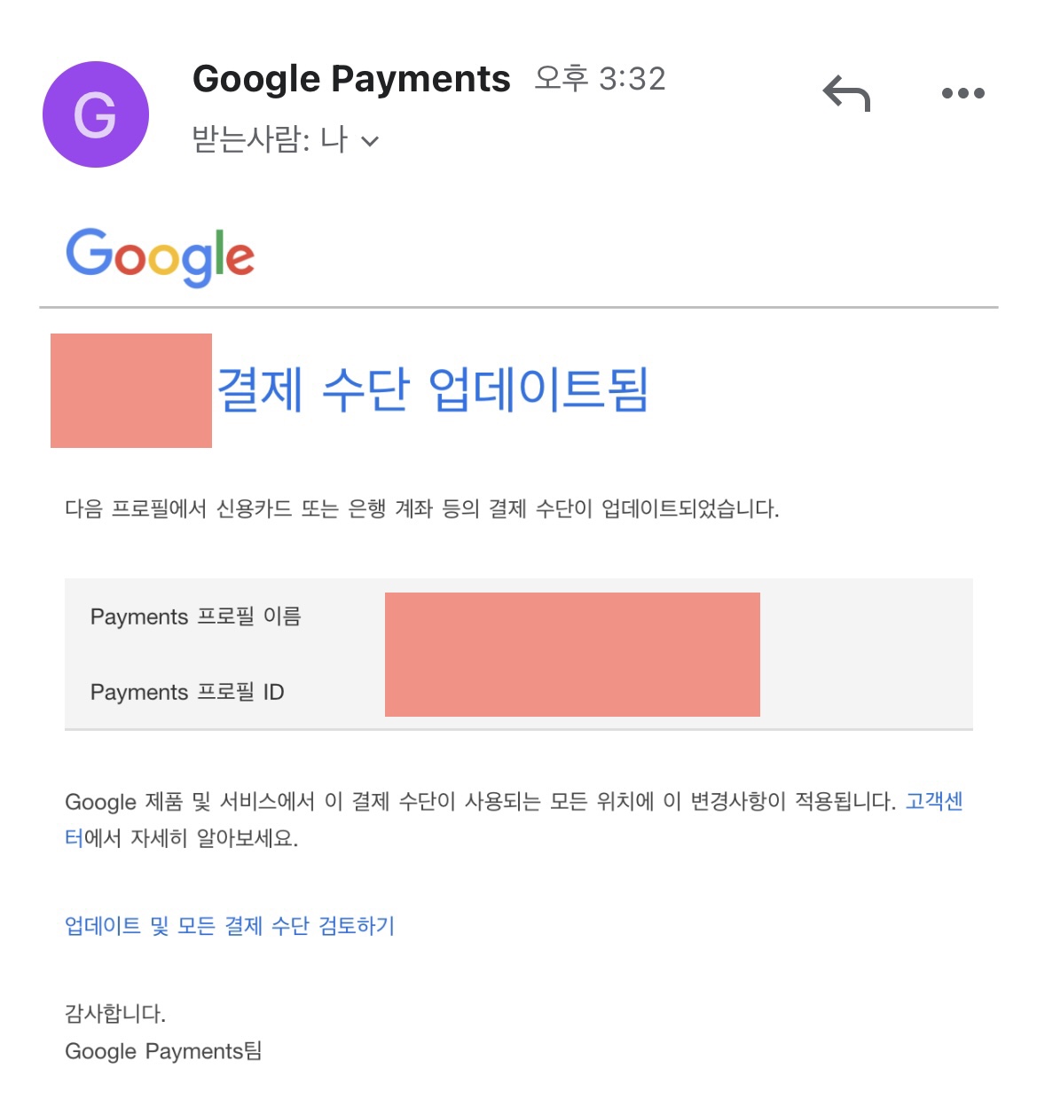 ▲ 결제 수단 등록이 되었다는 메일이 날라옵니다.