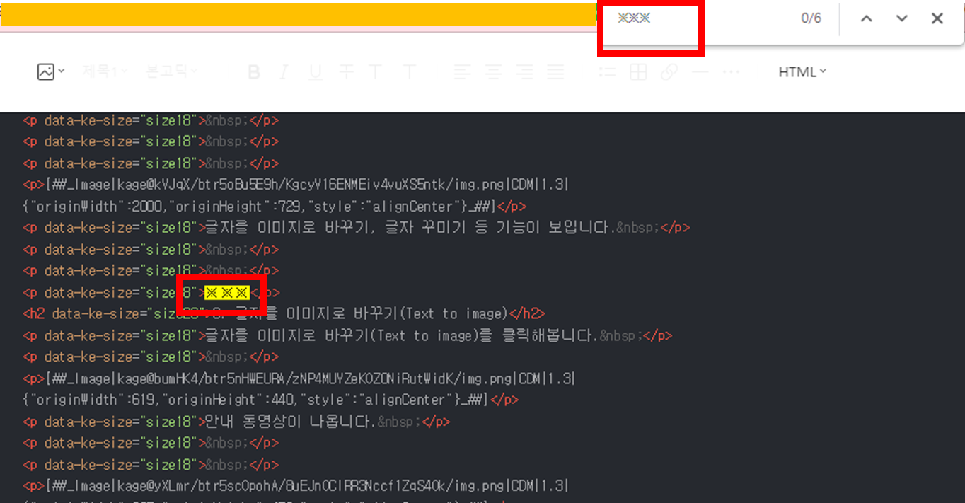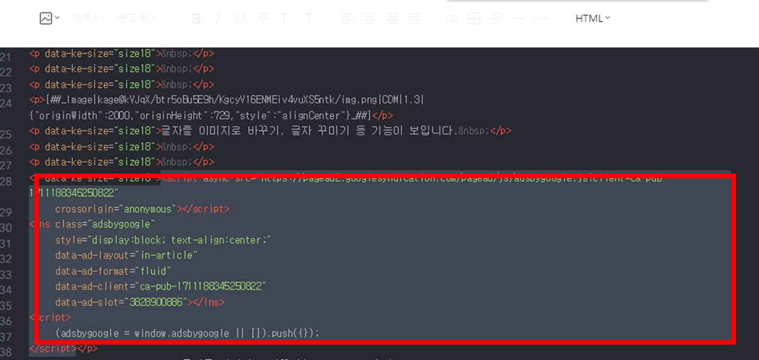 4) ※※※ 위치를 찾은 후에, ※※※를 지우고, 광고 코드 복사한 내용을 붙여넣기(Ctrl + V) 해줍니다.