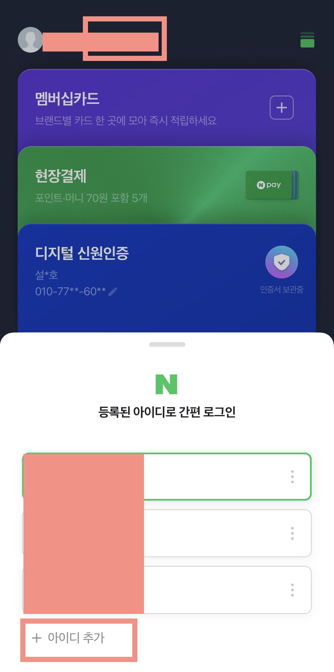 모바일에서도 '아이디 추가'하여 가입진행 하실 수 있습니다.
