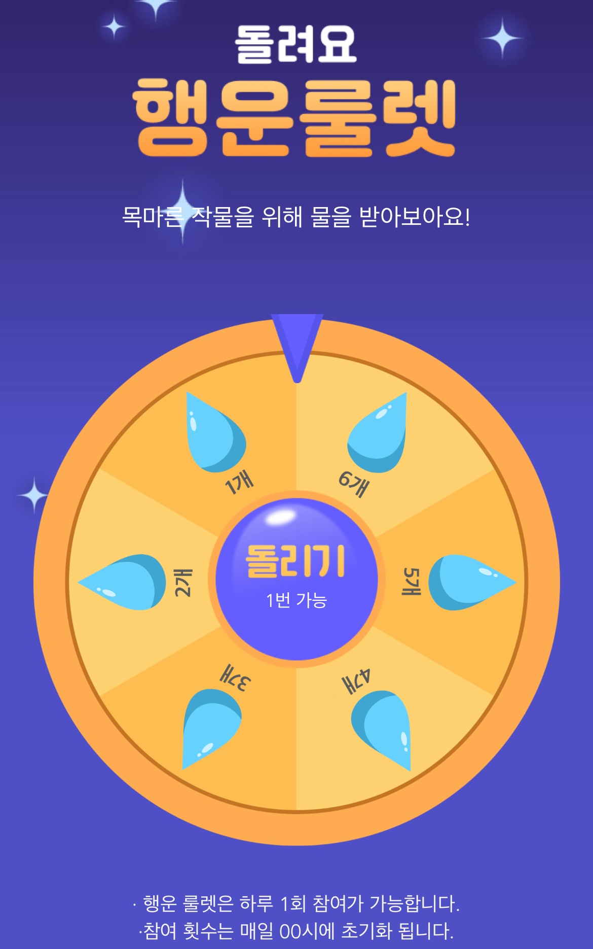 룰렛은 랜덤이고 물 1개 ~ 물 6개 중에서 자동으로 선택됩니다