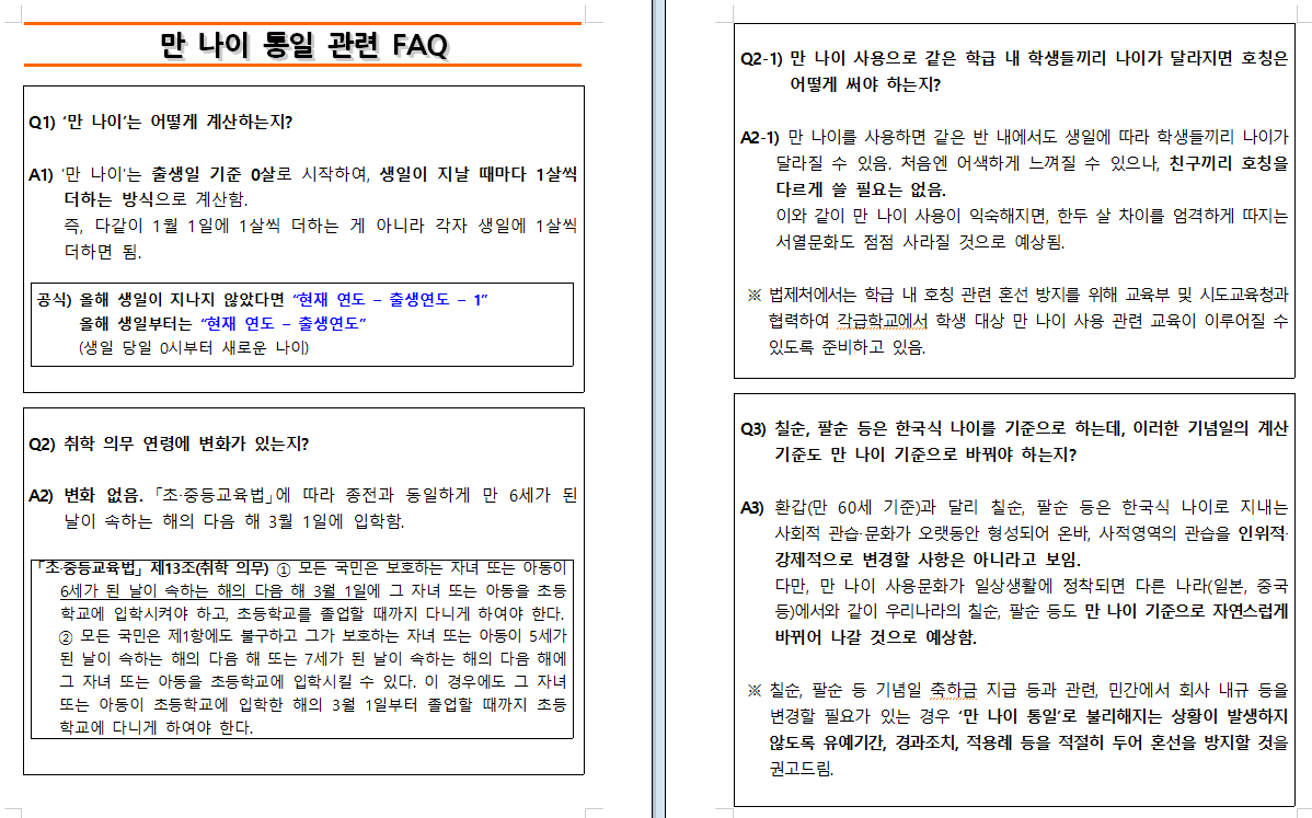 만 나이 시행 후 달라지는 점은 무엇이 있을까요?
