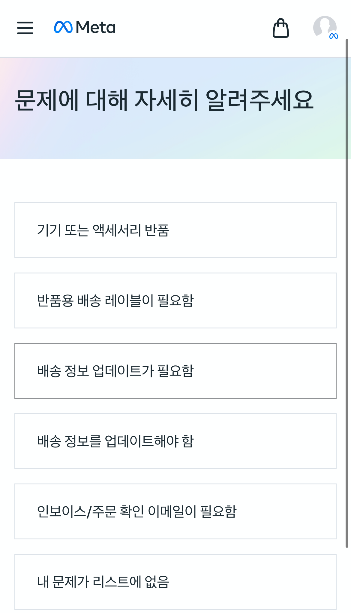 반품할 제품 (Meta Quest 3/3s)을 선택하고,