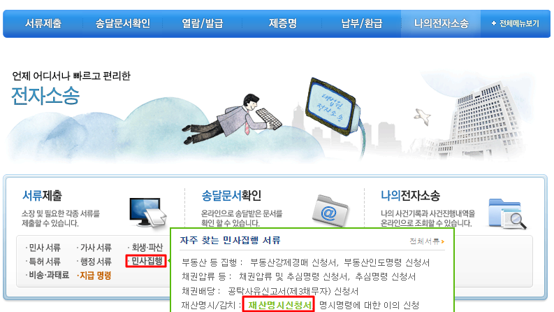 전자소송으로 재산명시 신청하는 방법을 아래 알려드리겠습니다.