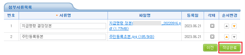 서류명은 '지급명령 결정정본' 입력하시면 됩니다.