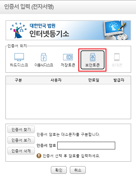 인증서 - 보안토큰을 클릭합니다.