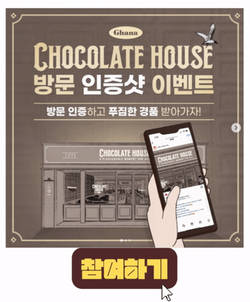가나초콜릿하우스 방문 인증샷을 찍고 인스타그램에 올리면 경품 이벤트에 참여할 수 있습니다.