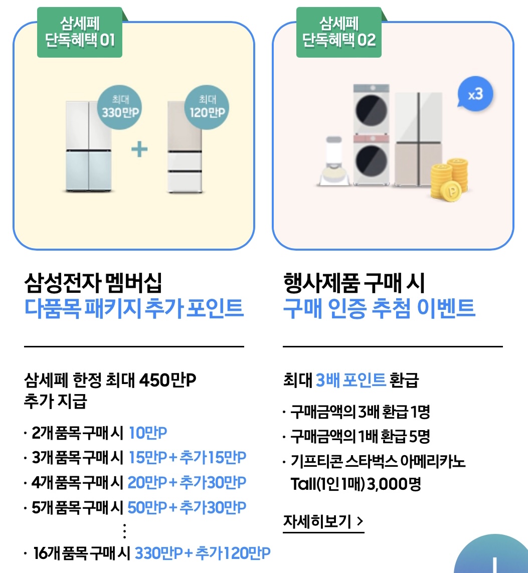 삼세페(삼성세일페스타) 기간, 품목, 캐시백, 이벤트 내용 알려드렸습니다.