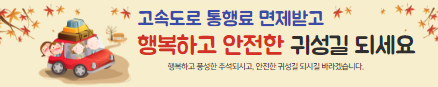 설 연휴 고속도로 통행료 면제 기간 알려드려요. 고속도로 통행료 면제 받고 즐거운 명절 다녀오세요~^^
