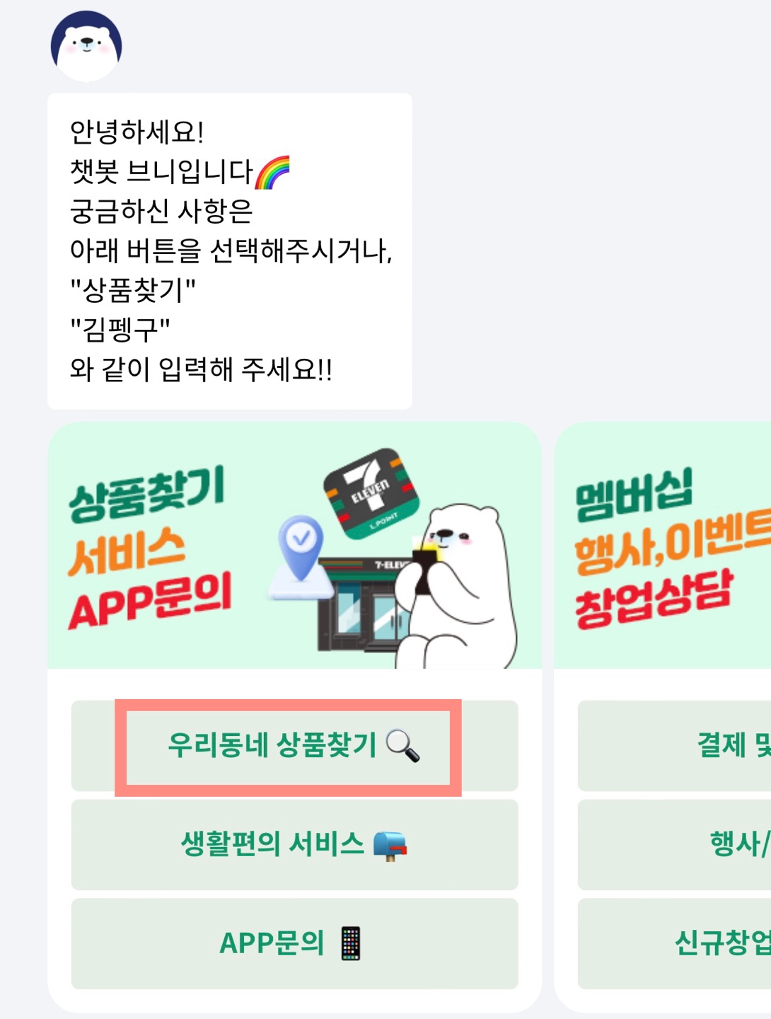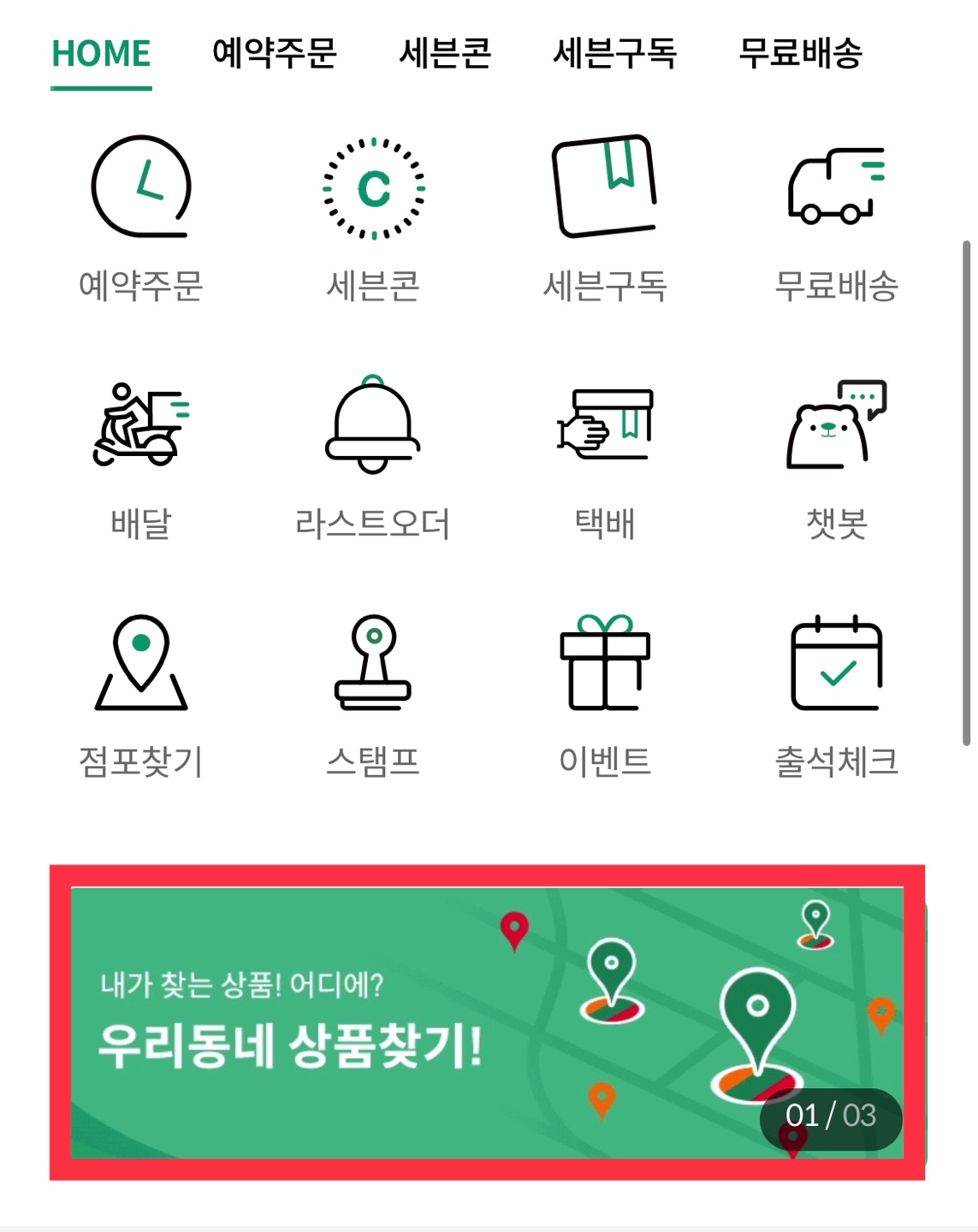 '세븐일레븐' 어플을 다운받아 실행합니다.