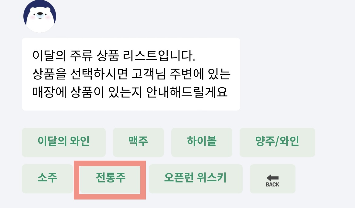 | 전통주 (클릭) | 송가인막걸리어라 (클릭) | 지도를 움직이며 재고정보 파악 |