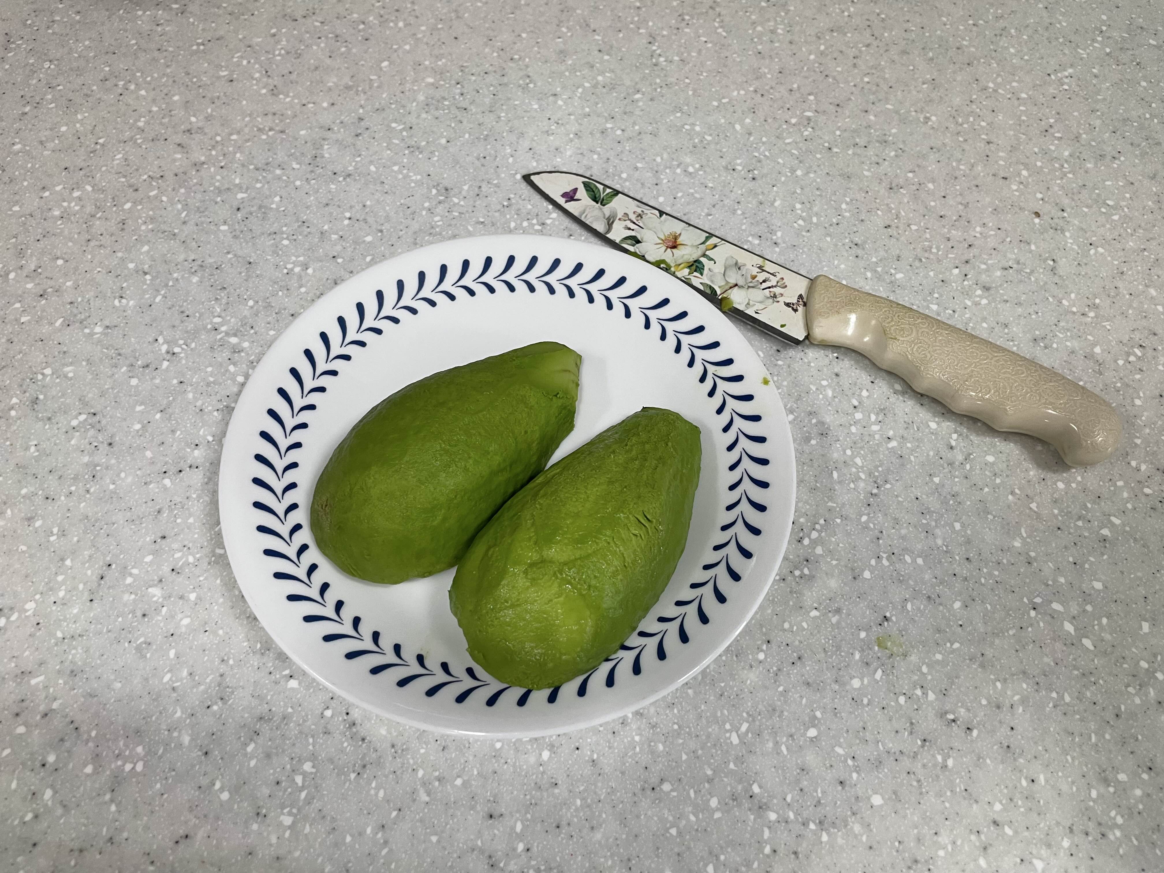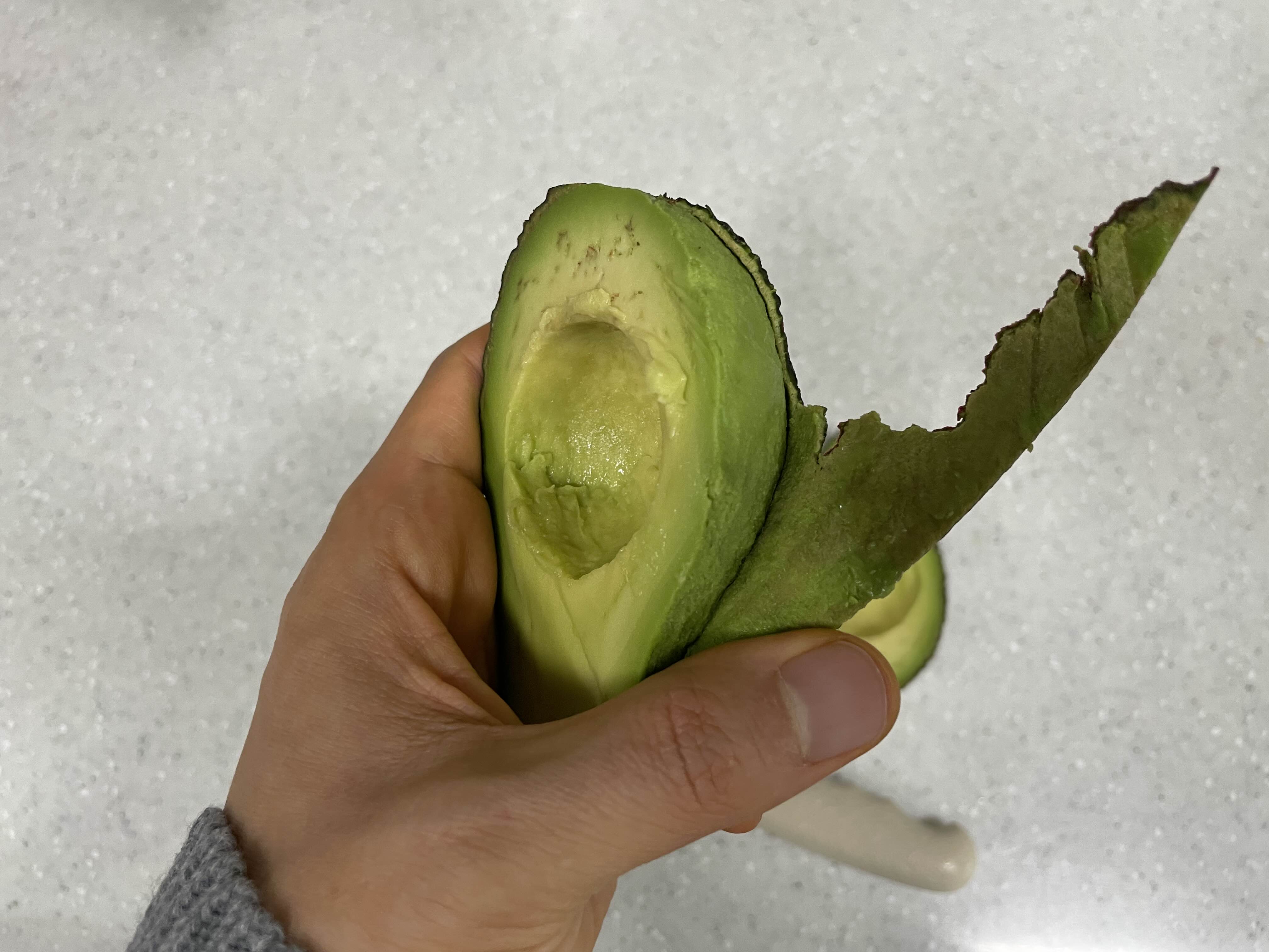 껍질 벗겨낸 아보카도 입니다.
