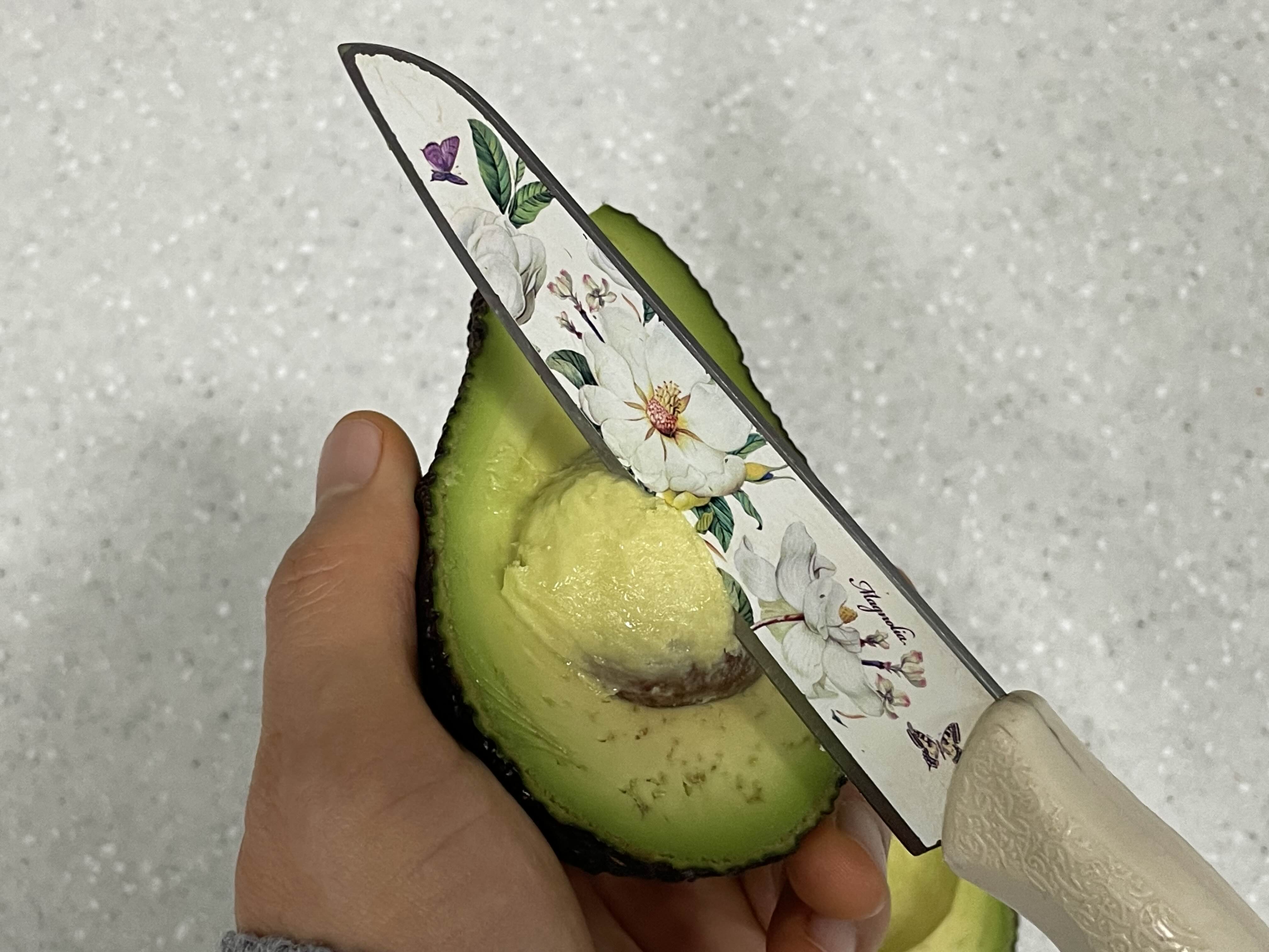 칼로 아보카도를 한바퀴 돌려줍니다.