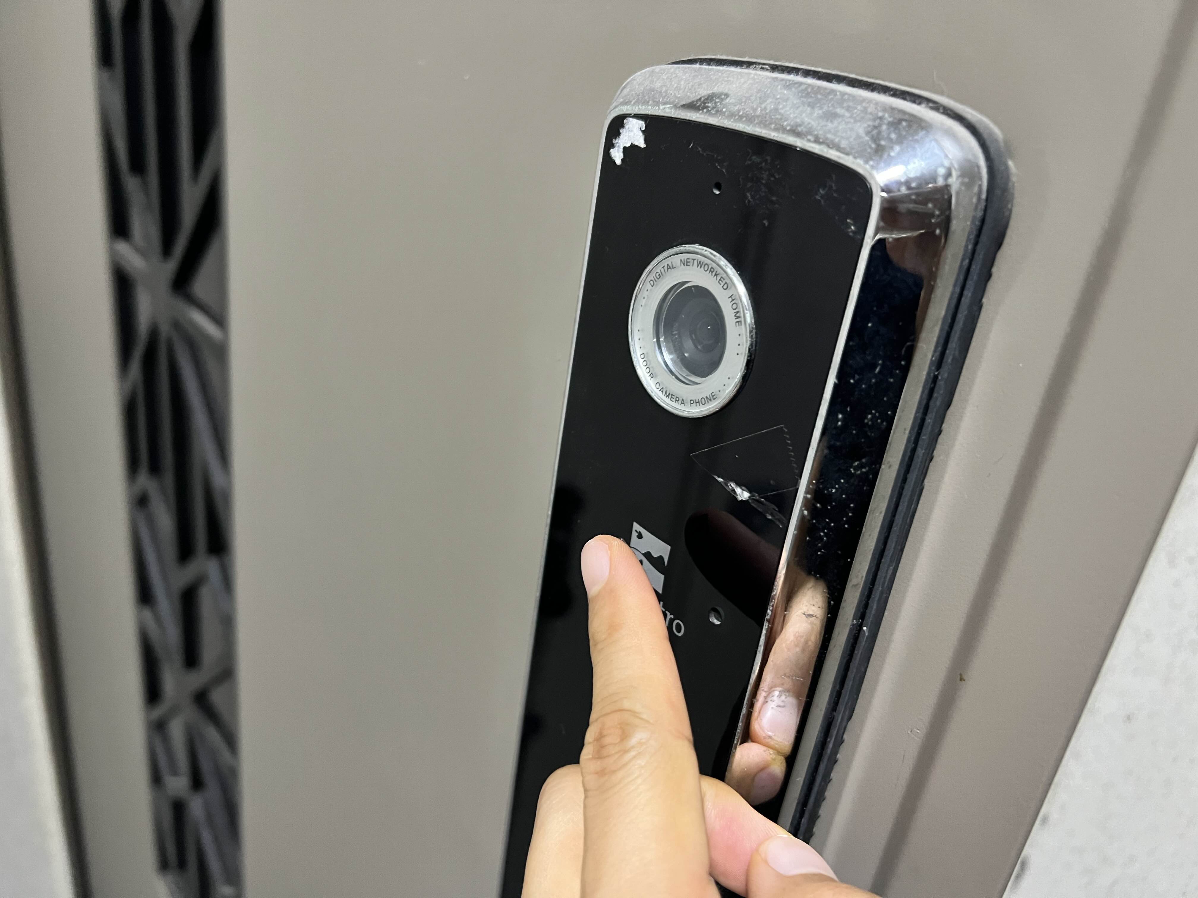 더 가까이... 거의 현관문에 NFC 스티커를 갖다 대야 작동을 하는데,