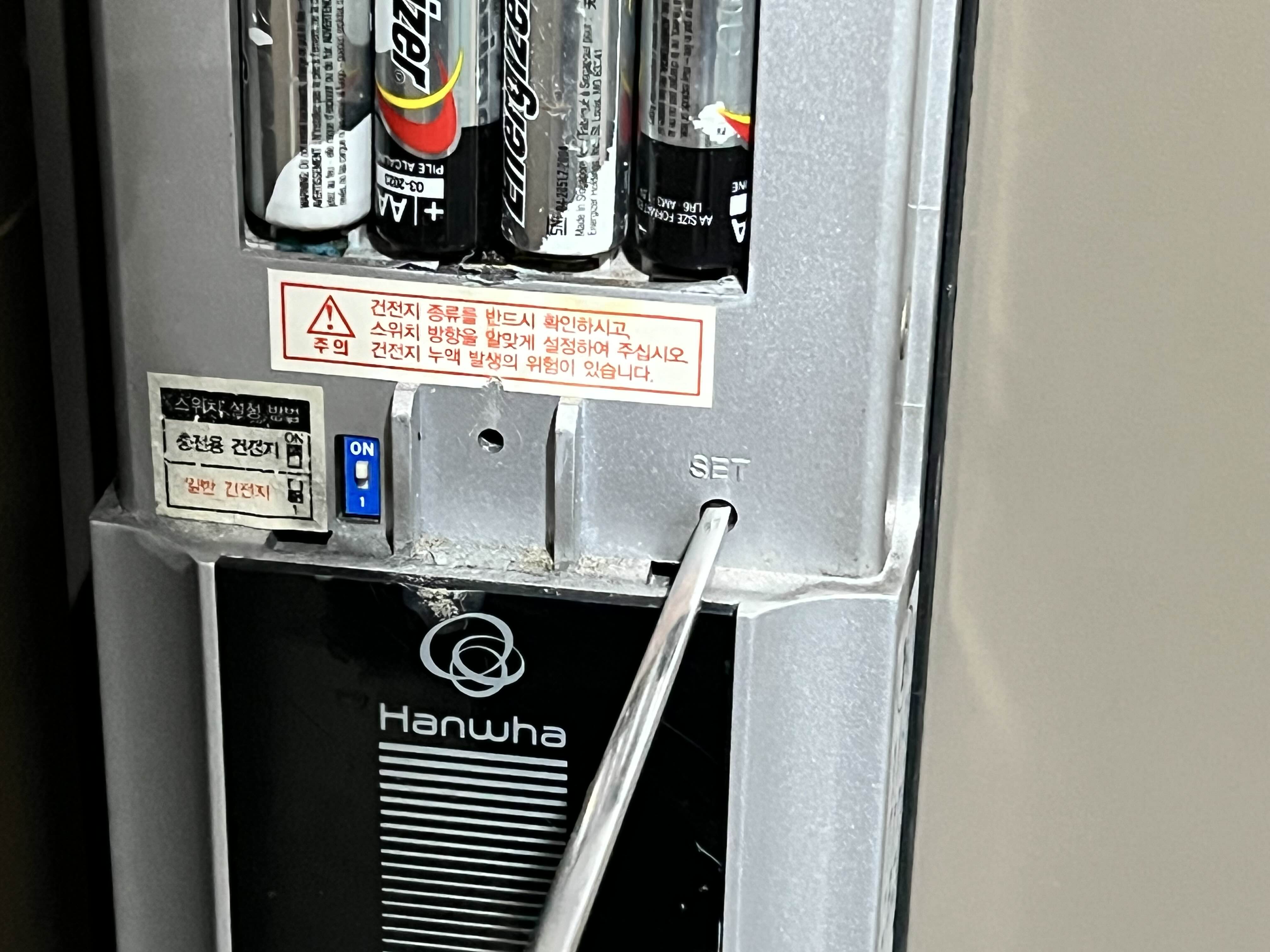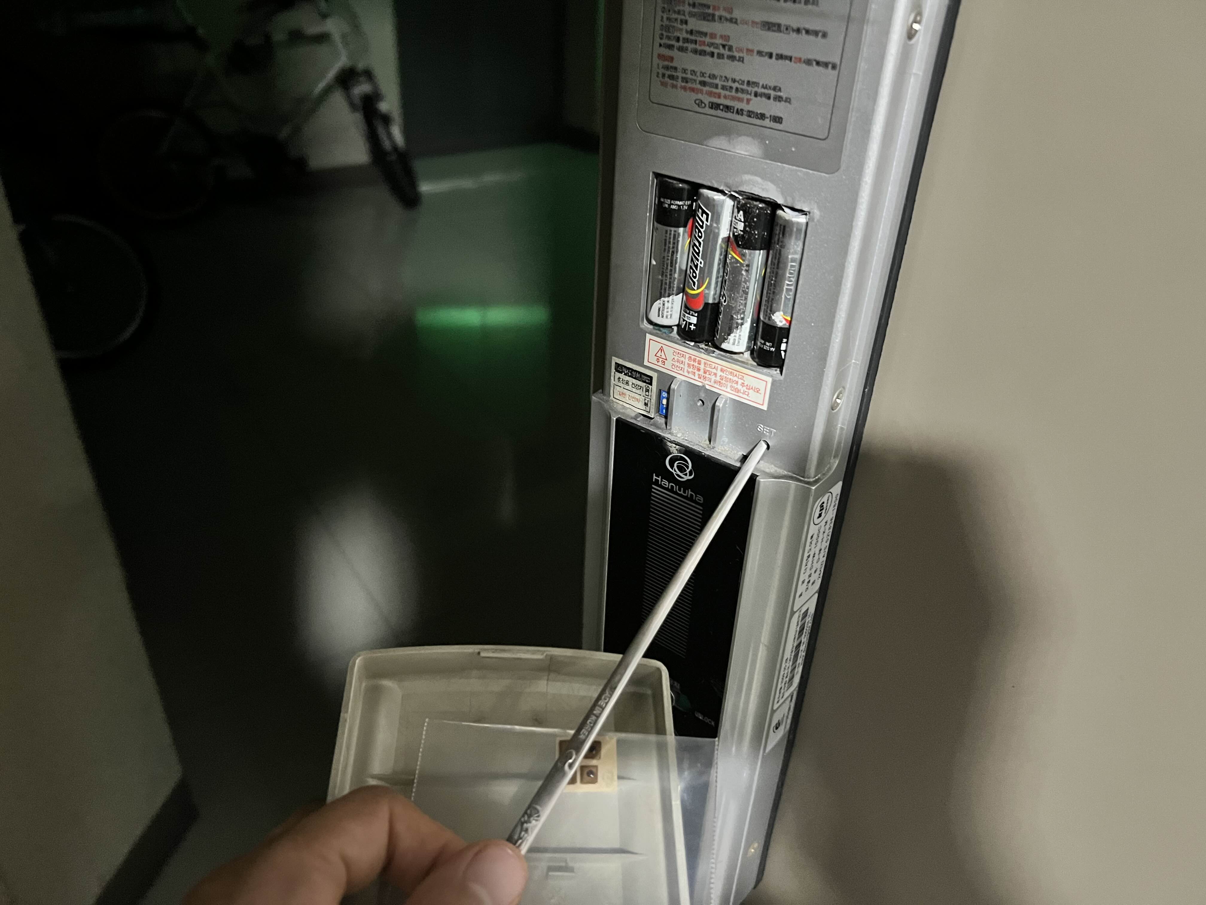 SET 버튼을 2번 눌러줘야 하는데, 기다란 젓가락을 사용하면 됩니다.