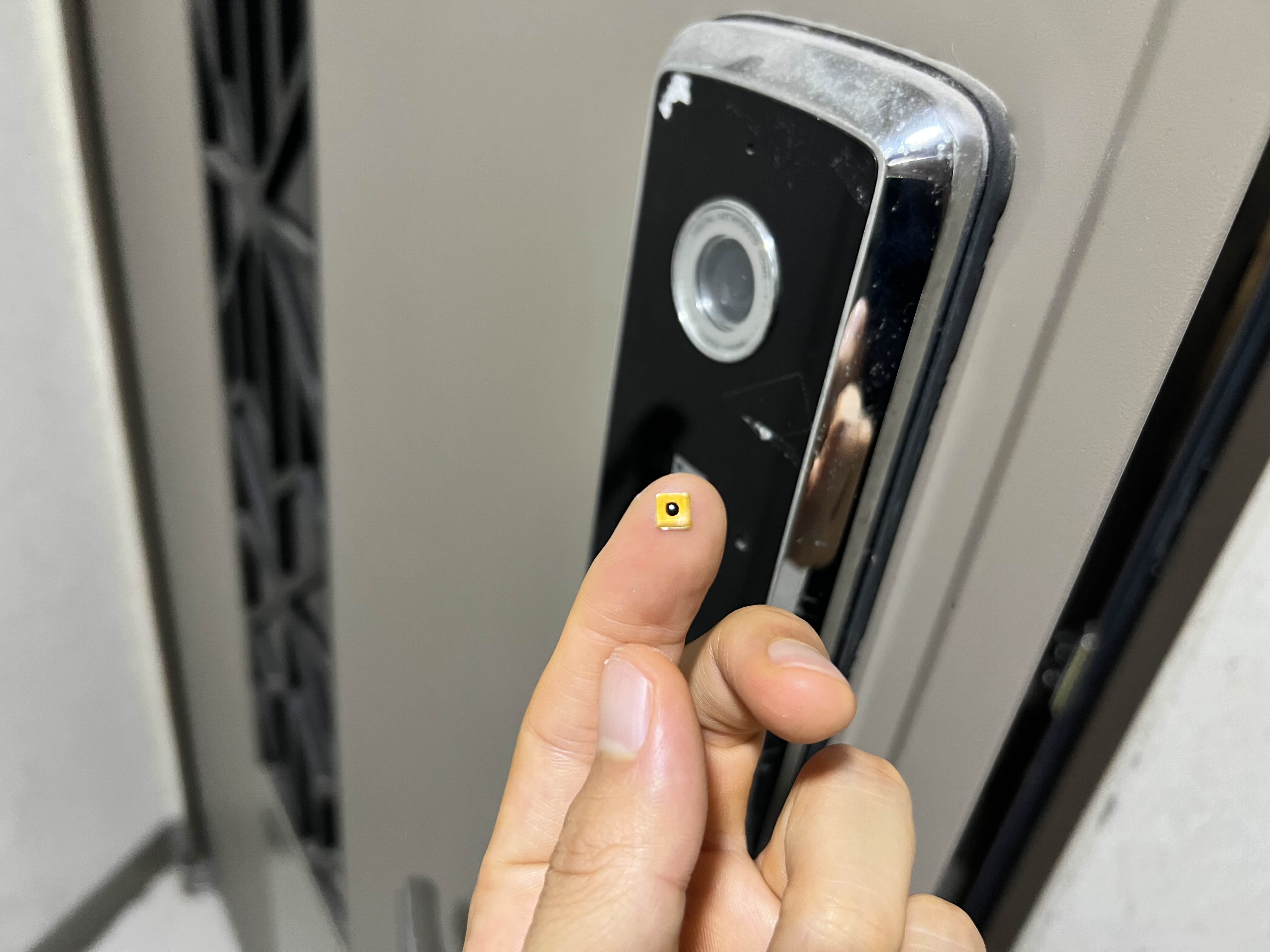 초소형 NFC 스티커를 현관문에 갖다 냅니다.