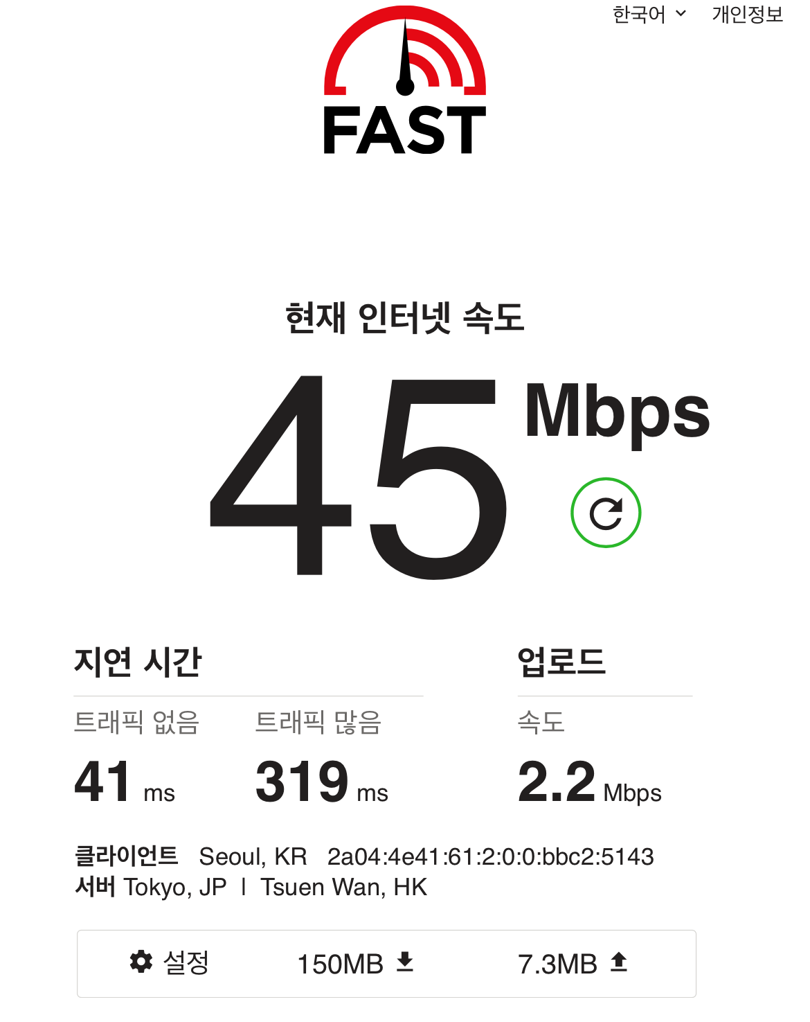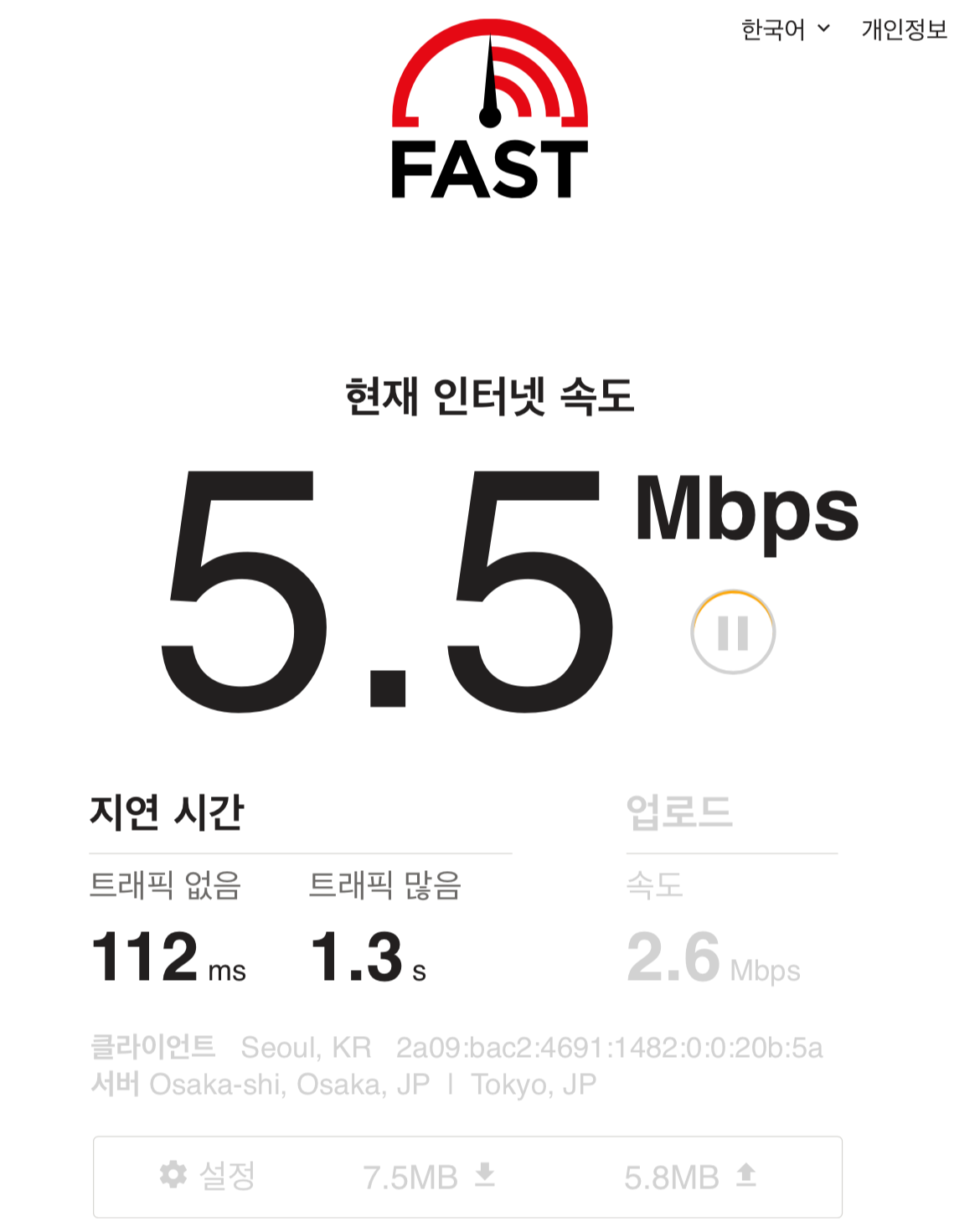그런데 속도가 채 10Mbps도 나오지 않는게 답답할 때가 종종 있었습니다.