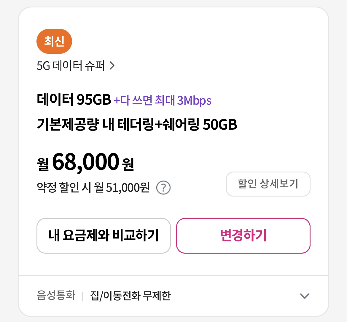 5G가 불안정하고 요금이 비싸다고 해서 지금까지 LTE요금제만 사용해 왔기 때문입니다.