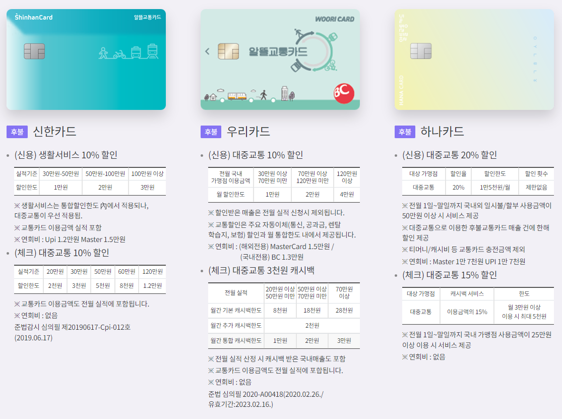알뜰교통카드 신용카드 / 체크카드 신청 세부내용은 아래 링크 참고하시면 더 자세한 내용을 보실 수 있습니다.