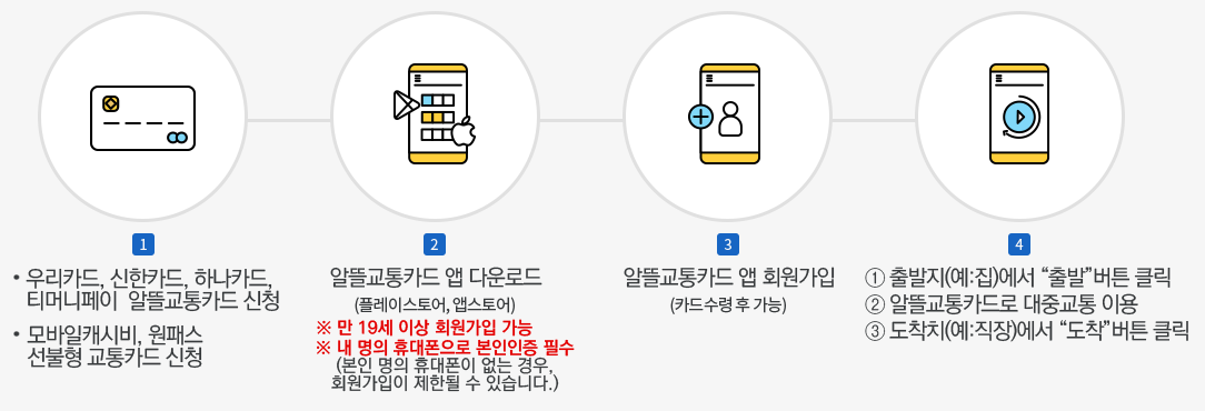 알뜰교통카드는 다음과 같은 절차를 거친 후 사용하실 수 있습니다.