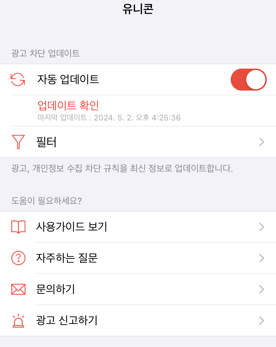 광고차단 어플 ‘유니콘’을 설치합니다.