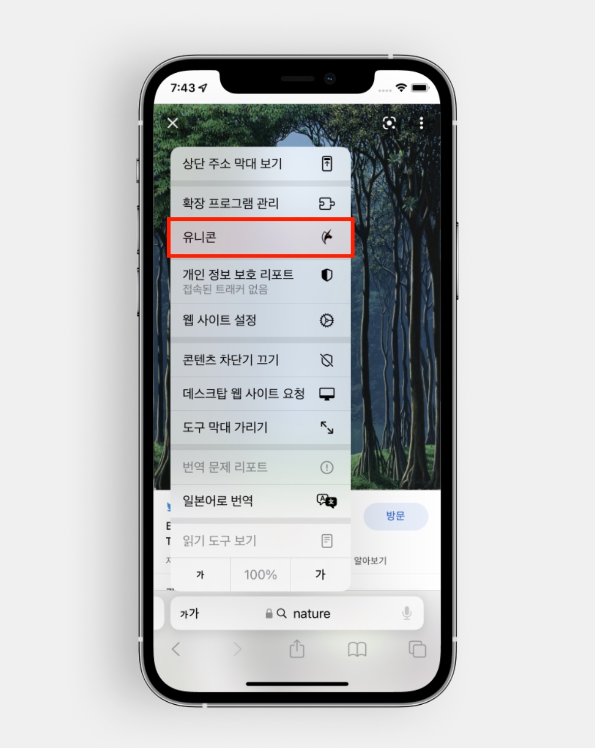 유니콘 어플을 사파리(아이폰 인터넷 브라우져)에서 활성화시켜서 광고를 차단하는 기본셋팅 방법입니다.