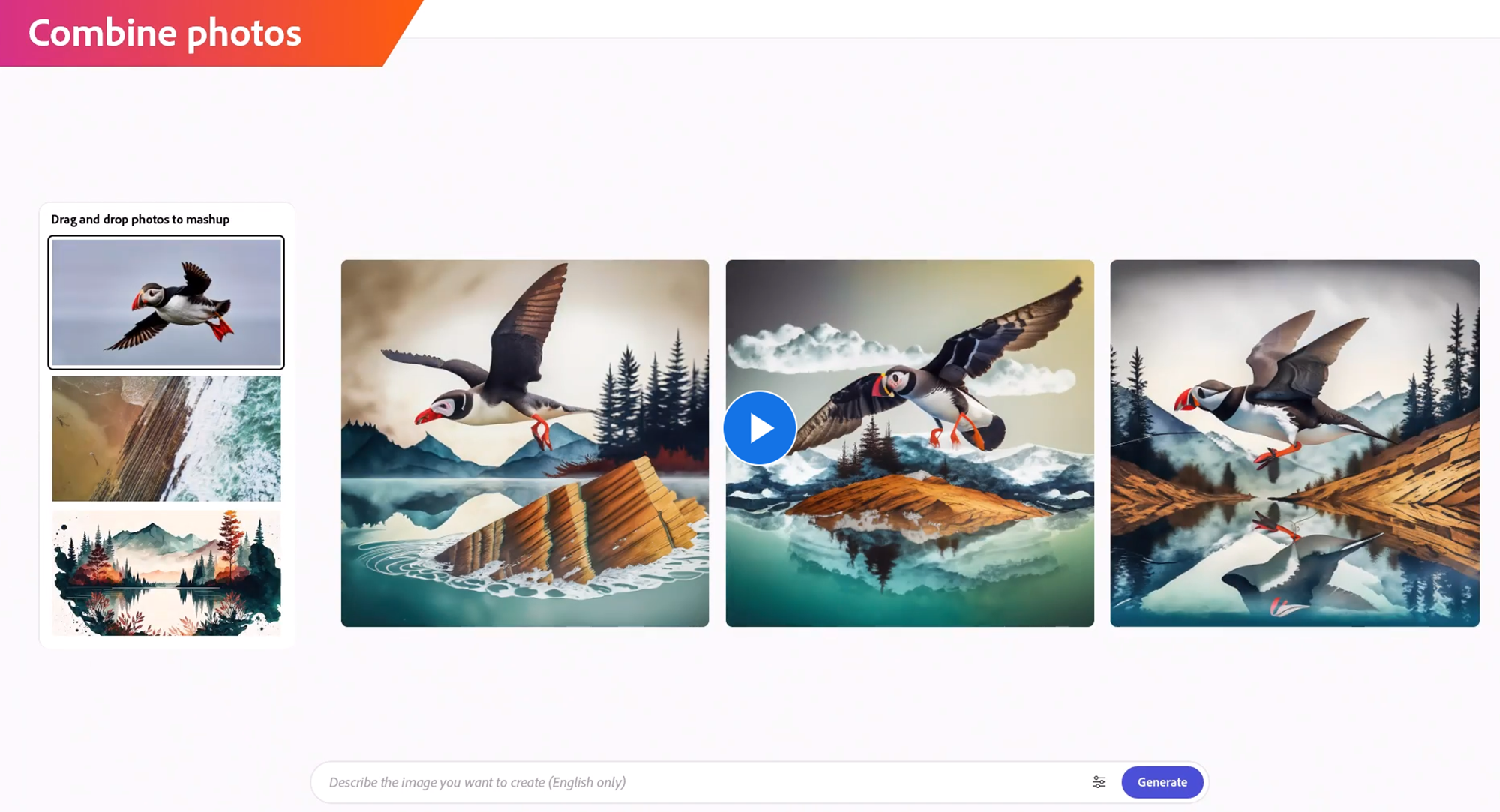 어도비 '파이어 플라이'는 여러 사진을 하나의 사진으로 합쳐서 새로운 이미지를 만들어줍니다.
