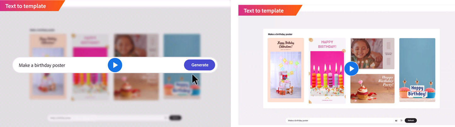 어도비 '파이어 플라이'는 템플릿도 자동으로 만들어줍니다. 생일 포스터를 만들어달라고 명령하니 짠! 포스터가 만들어집니다.