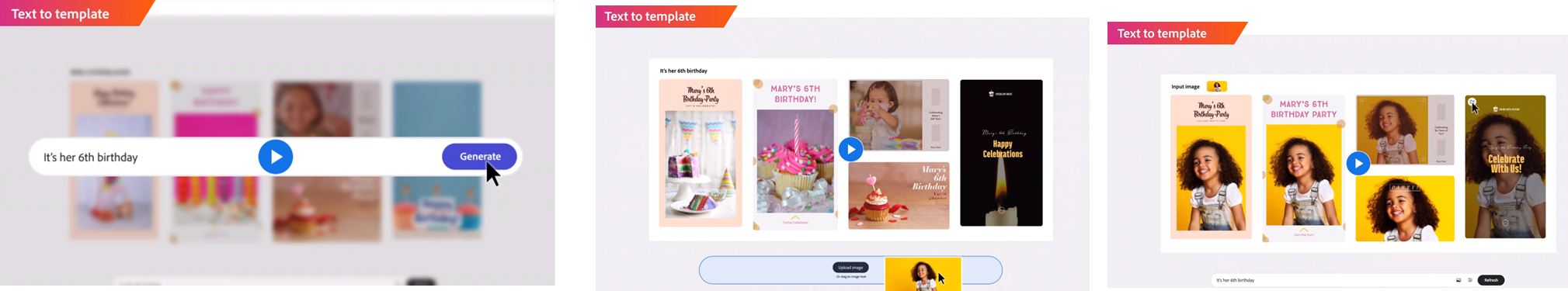 6번째 생일이라고 입력하고, 이미지 사진을 첨부하니 '맞춤형' 템플릿이 생성되었습니다.