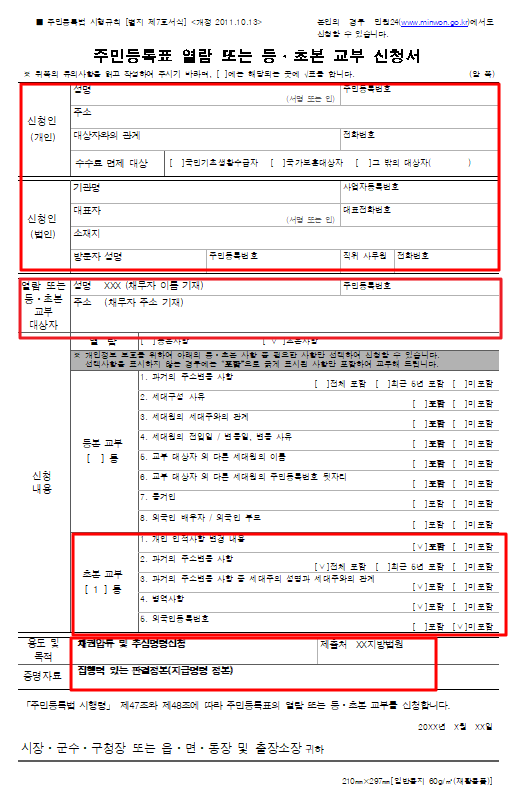 채무자 초본은 주민센터(옛 동사무소)에서 발급 신청가능합니다.