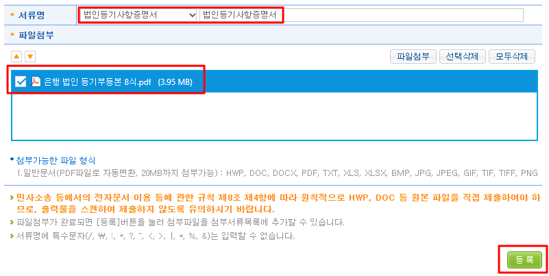 제3채무자로 입력한 8개 금융기관의 법인등기부등본을 첨부하시면 됩니다.