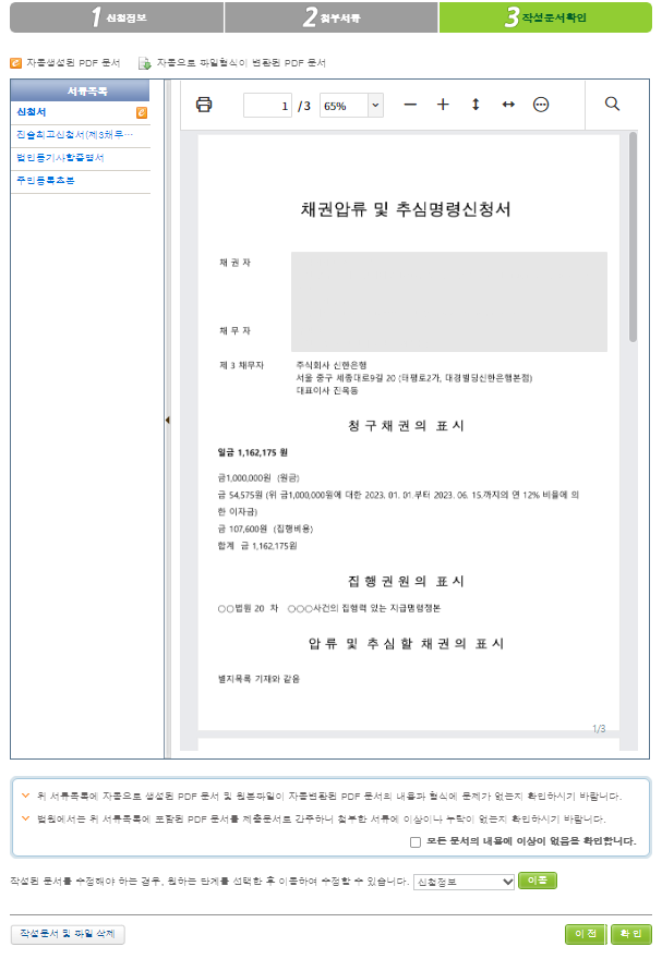 모든 서류가 첨부되면 아래와 같이 첨부 완료된 것을 확인하실 수 있습니다.