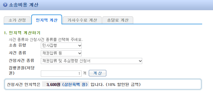 - 집행비용은 인지대 + 송달료 입니다.