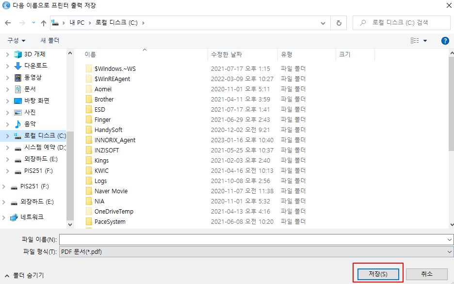 저장할 폴더 위치를 선택 한 후 '저장'을 눌러줍니다.