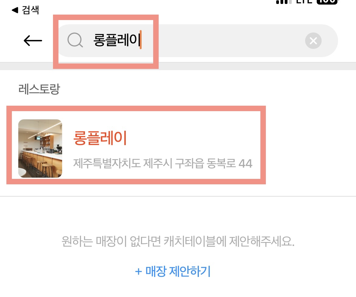 '캐치테이블'을 열어서 검색창에 '롱플레이'를 입력합니다.