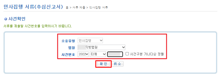 '채권압류 및 추심명령' 신청한 사건번호를 입력하시면 됩니다.