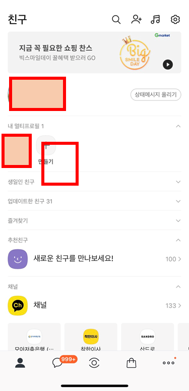 3. 멀티프로필 완성 후, '친구 관리'를 들어갑니다.