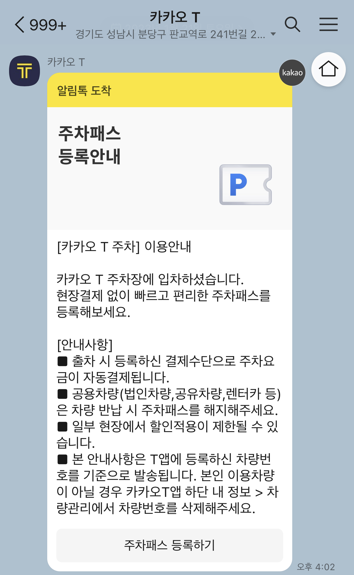 카카오T 주차패스를 이용하니 참 편리하네요.