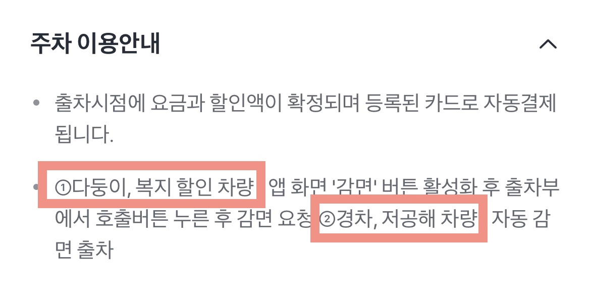 다둥이, 복지할인 차량은 ‘감면’ 버튼을 눌러 활성화 시켜야 합니다. 경차, 저공해 차량(하이브리드, 전기차, 수소차)은 ‘자동 감면’ 이므로 ‘감면’ 버튼을 누르지 않고 출차합니다.