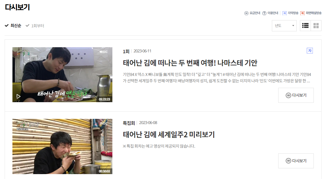 지난 방송을 무료로 볼 수 있는 것입니다.