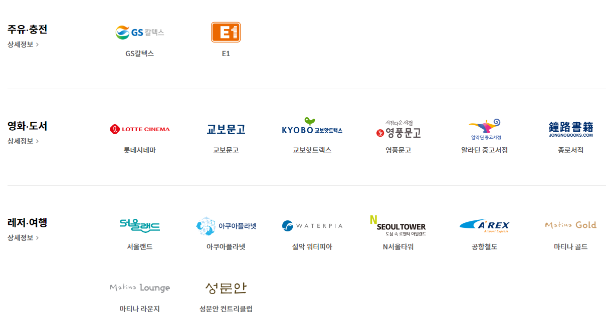 각 카드별 추천내용은 아래 영상을 참고해 보시기 바랍니다.