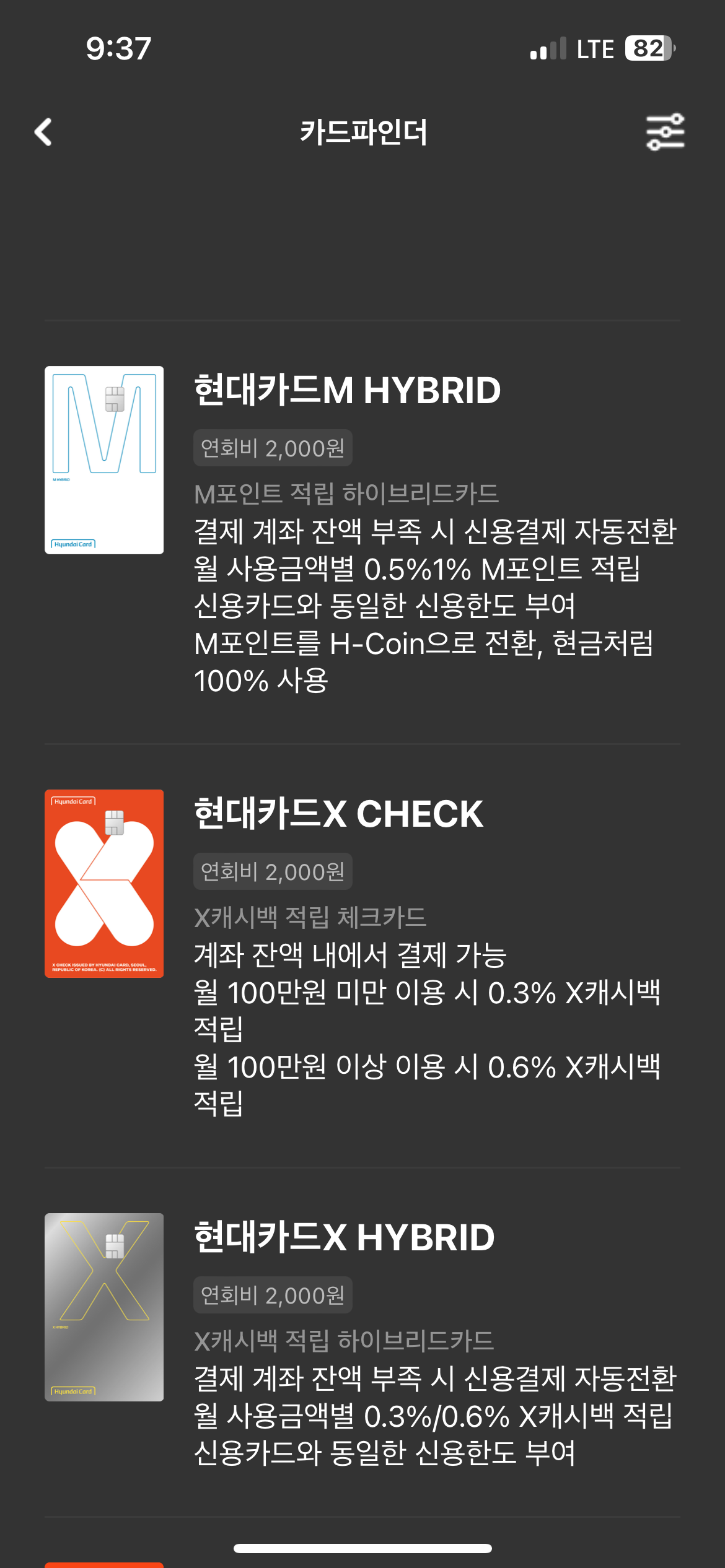 현대카드 X HYBRID 카드를 선택하였습니다.