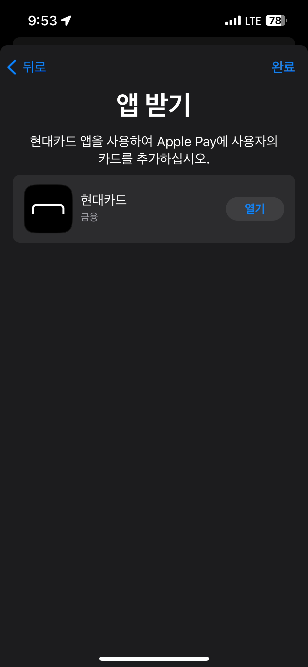 애플페이를 사용하기 위해서는 '현대카드'만 사용이 가능합니다.