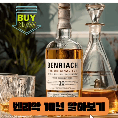 '벤리악 10년'은 버번, 셰리, 버진 캐스크 조합에서 숙성한 스페이사이드 싱글 몰트입니다. 여름 태양빛을 머금은 골드 컬러 '벤리악 10년'의 향기를 처음 맡으면 풋사과와 오렌지 껍질, 열대 과일과 같은 풍부한 과일 향이 납니다. 여기에 그을린 오크의 미묘한 힌트가 코끝을 스칩니다. 이후 '벤리악 10년'에서는 바나나, 건포도, 시나몬의 달콤함, 그리고 스파이시한 향신료와 부드러운 아몬드가 층층이 나타납니다.