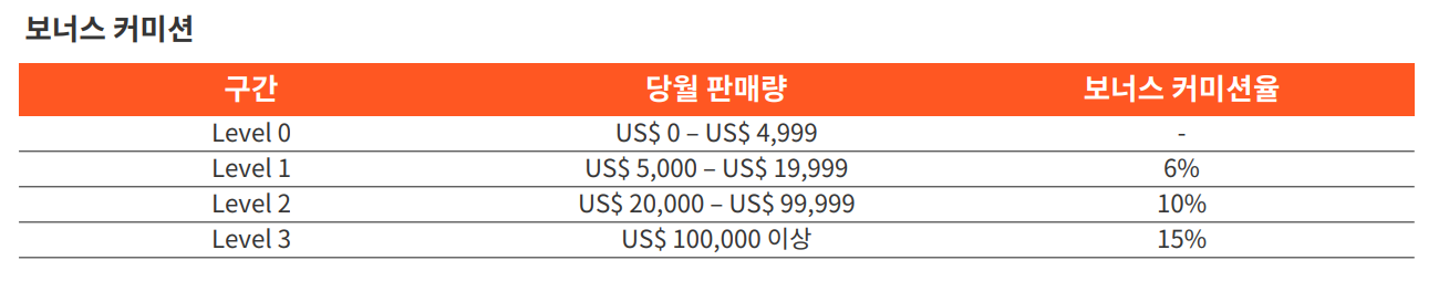 보너스 커미션은 판매량에 따라 추가로 6~15%의 수수료를 더 받을 수 있습니다.