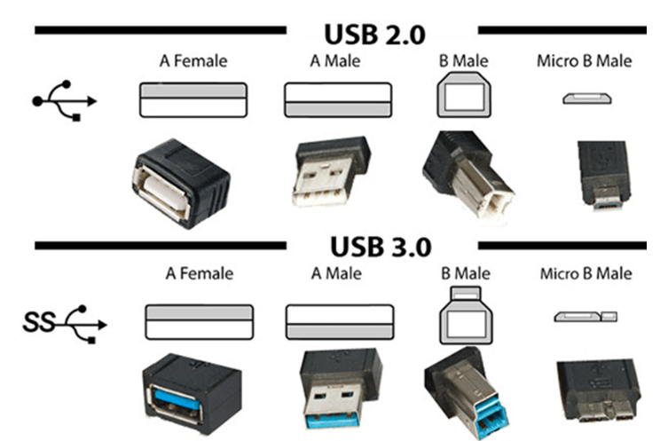 PC 본체에서 USB 2.0은 단자가 흰색입니다. USB 3.0은 단자가 파란색입니다.